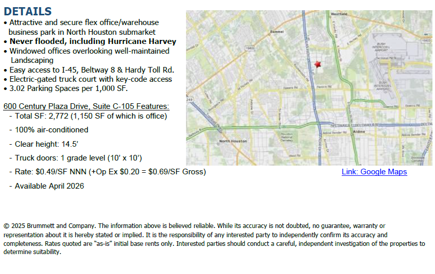 600 Century Plaza Dr, Ste C-105, Houston, TX 77073 600 Century Plaza Dr, Ste C-150, Houston, TX 77073
